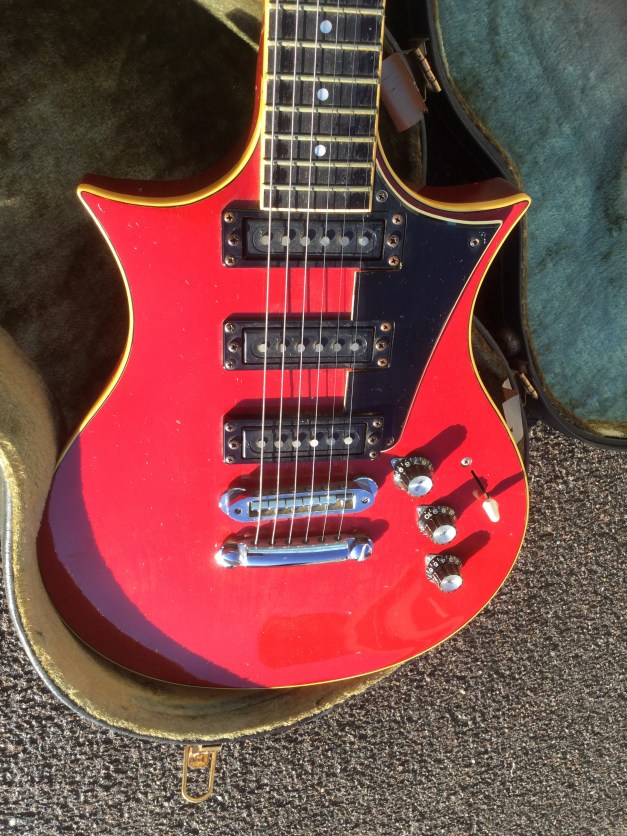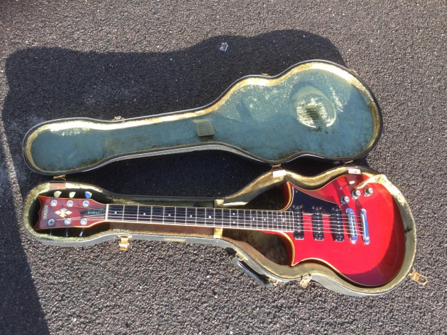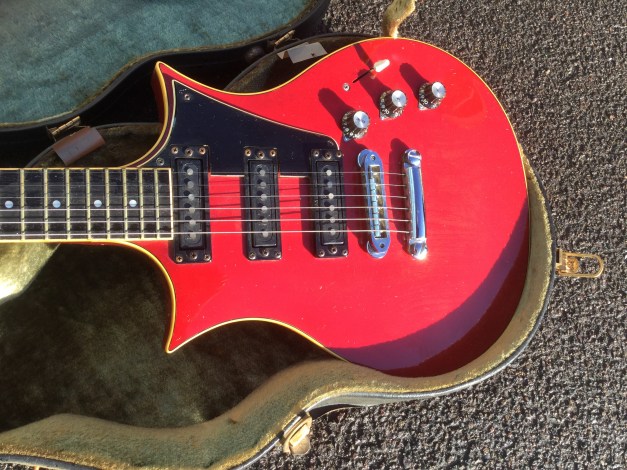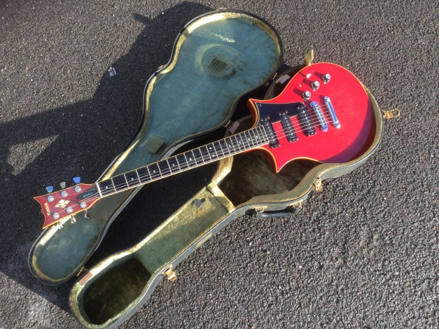 Rare Yamaha SX-800B – “The Devils Head” , 1976, in translucent red finish, 1st issue. The SX models were in the day also known as the “Devilhead Guitars” and along with the SG were developed after the earlier SG-90/175 that were made 1974-75. The SX was short lived and last models were issued in 1976/8. The A models were kitted out with hum-buckers and the B models had 3 single coils pickups. The construction materials varied between the A and B versions. The B version was made out of Japanese Ash for the body and neck, with an ebony finger board. Notable players were Tommy Bolin and Rory Gallagher. The Yamaha SX-800B sports 3 independent single coil, high output pick ups that can be selected with a 5 way slider switch and its tonal variety and range is immense, varying from soulful and clear, to a powerful growl.