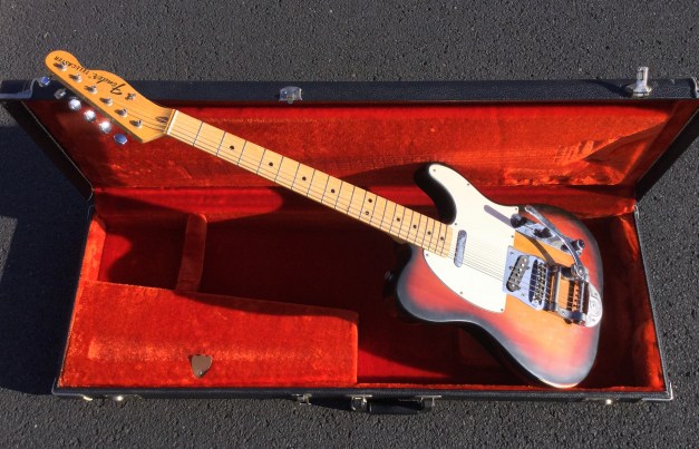 Here a Fender Telecaster in Tobacco Sunburst made in USA 1972. Great 70s vintage, with all the trimmings and a factory fitted Fender stamped Bigsby on it. The guitar is in virtually mint condition Great looker and a killer player, as you would expect from a classic Telecaster guitar. Collectible machine and great players gear with ounces of mojo and a great vintage feel to it. You can find Tele’s in many colours, however, the tobacco sunburst colour with Fender Bigsby a rare one, with some minor wear marks on the pick-guard from actual playing.