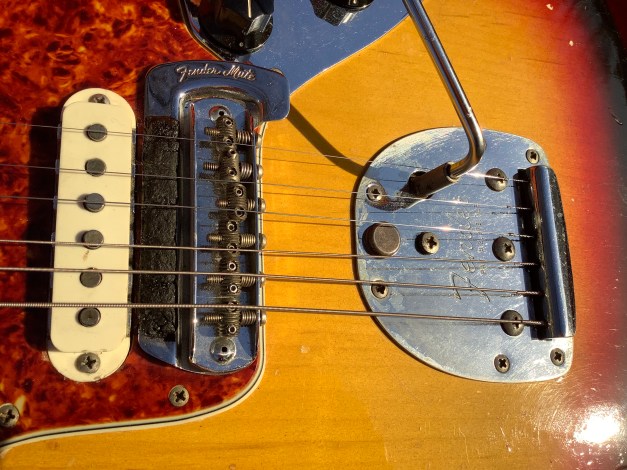 The Fender Jaguar is an electric guitar made by Fender and characterized by an offset-waist body, a relatively unusual switching system with two separate circuits for lead and rhythm, and a short-scale 24″ neck. Owing some roots to the Jazzmaster, it was introduced in 1962 as Fender’s feature-laden top-of-the-line model, designed to lure players from Gibson. During its initial 13-year production run, the Jaguar did not sell as well as the Stratocaster and Telecaster, and achieved its most noticeable popularity in the surf music scene.