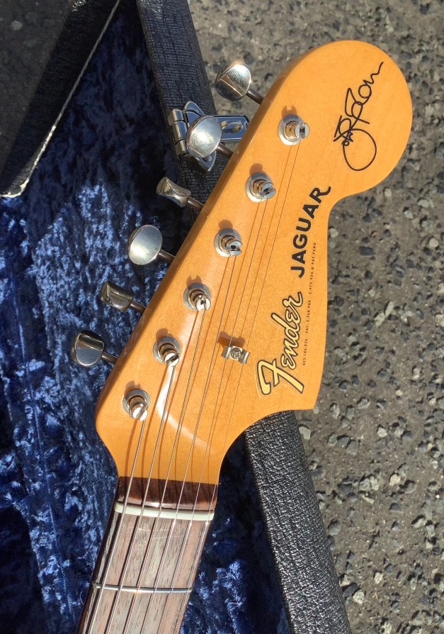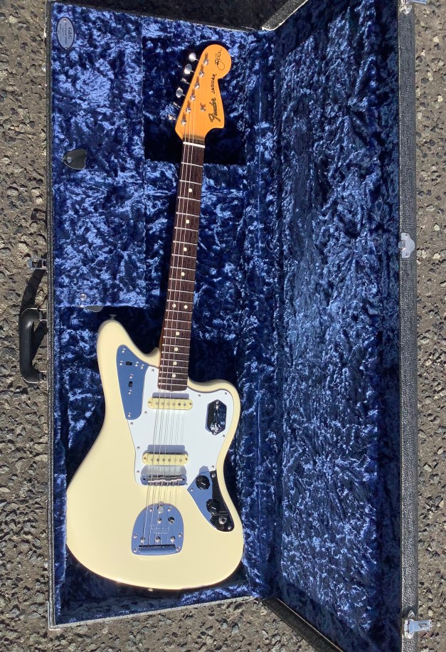 The Fender Jaguar is an electric guitar made by Fender and characterized by an offset-waist body, a relatively unusual switching system with two separate circuits for lead and rhythm, and a short-scale 24″ neck. The Jaguar was taken out of production in 1975, and vintage Jaguars became popular first with American punk rock players, and then more so during the alternative rock and indie rock movements of the 1980s and 1990s.