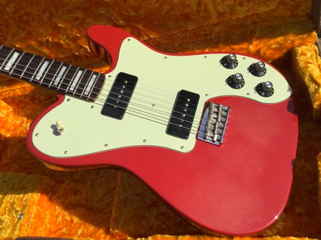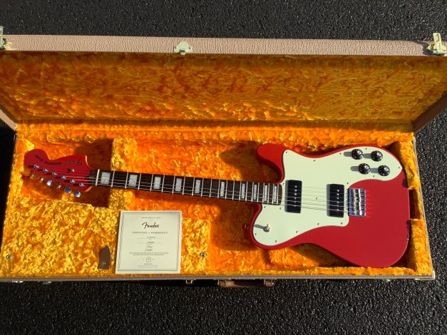 Check out this stunning Chris Shiflett Fender Deluxe Telecaster “The Cleaver” in Dakota Red, made in the USA in. The classic Telecaster features are still there but the typical single coil pickups are replaced by a set of noiseless Fender’s CS-90, similar to Gibsons P90s equivalent, ensuring the guitar can be heard thru the mix in a band setting.