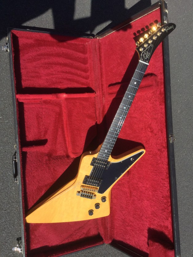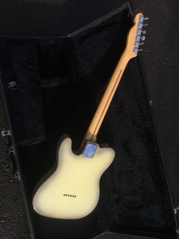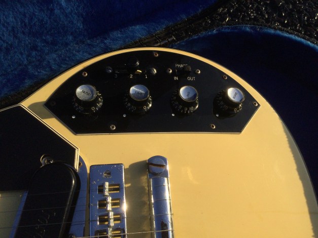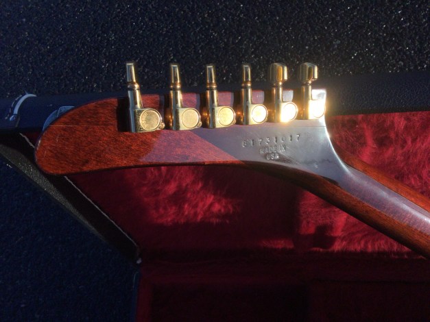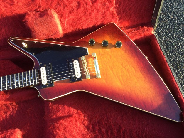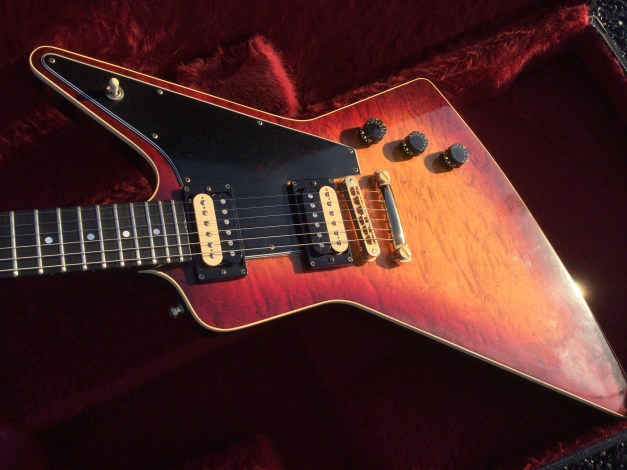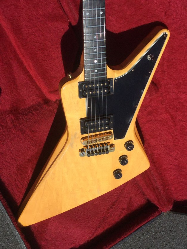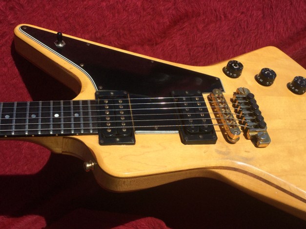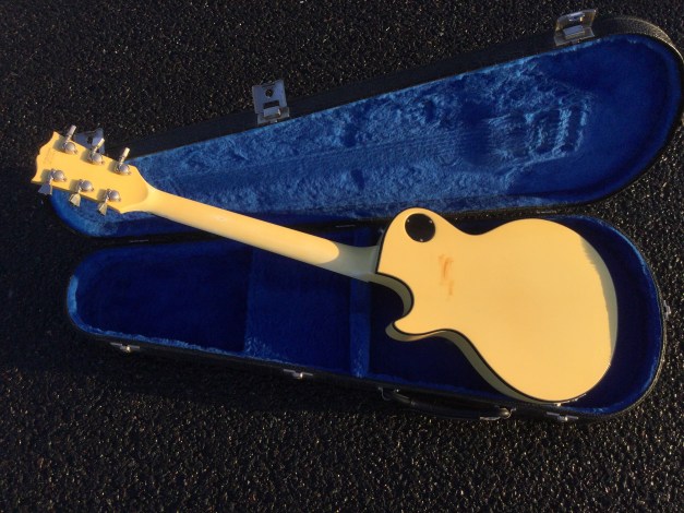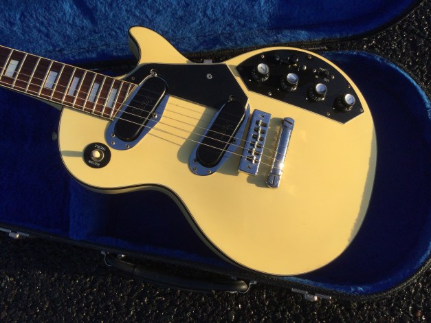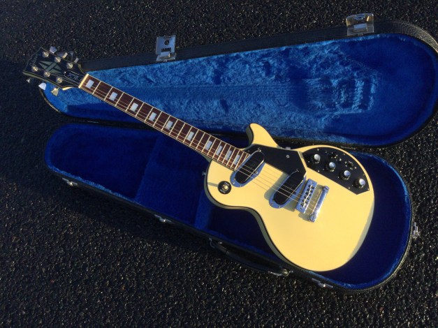 Here a Yamaha SX-800A in walnut brown. The SX models were in the day also known as the “Devilhead Guitars” and along with the SG were developed after the earlier SG-90/175 that were made 1974-75. The SX was short lived and last models were issued in 1976/8. The A models were kitted out with hum-buckers and the B models had 3 single coils pickups. The construction materials varied between the A and B versions. The A version was made out of Maple and Mahogany for the body and the set neck was built from mahogany with an ebony board. Notable players were Tommy Bolin and Rory Gallagher.