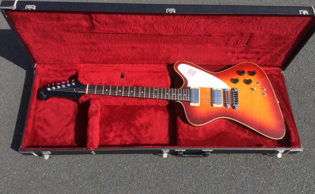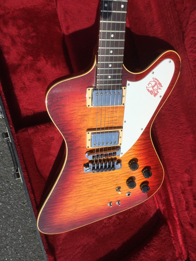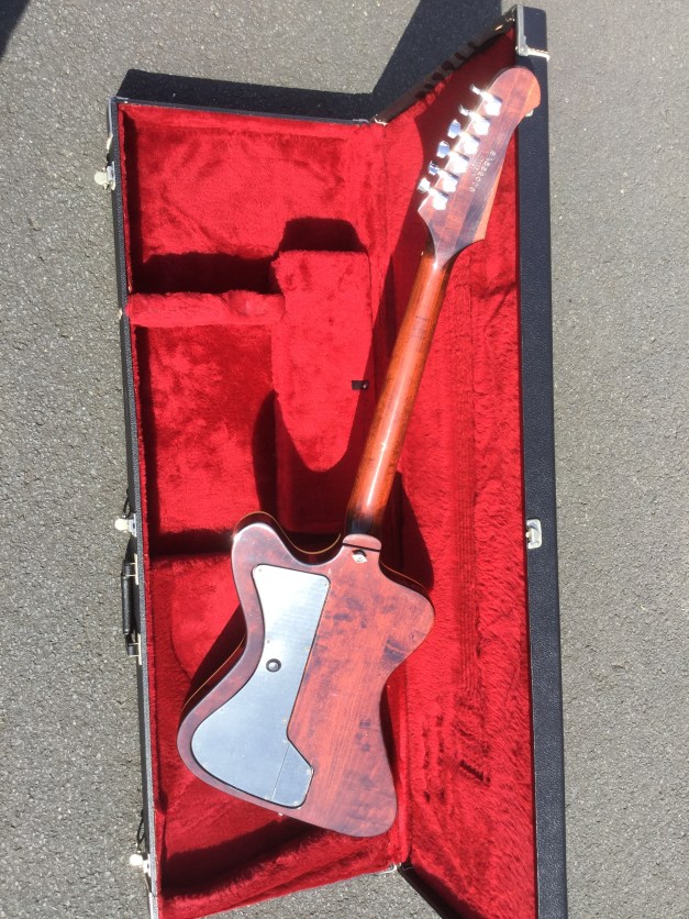 Generally, the V2 model has the general shape of previous Flying V’s but the V2 sported a 5-layered sculptured walnut and maple body. Initially these guitars came in either Maple or Walnut for the top & bottom layer known at Gibson as the “Sandwich”. This model is less pronounced “Walnut” than the other V2 in the collection but nevertheless a great guitar.