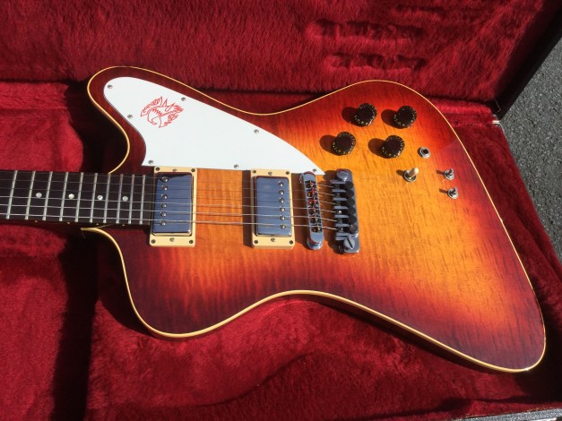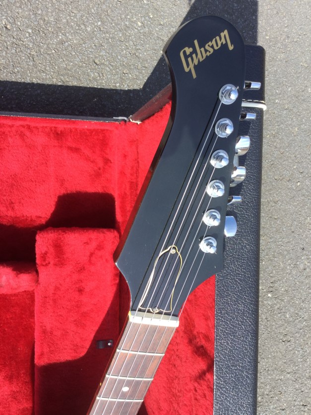 Knobs were moved off the pickguard, and a Pearl Gibson logo was inlaid into the black headstock, along with gold Gibson Tuners. Two solid brass 5/8 studs known as the “Sustain Sisters” were fitted into the body to anchor the “Tune-o-matic” Bridge along with a brass nut and brass V-shaped tailpiece. It was thought this would aid sustain and tone of the V2.