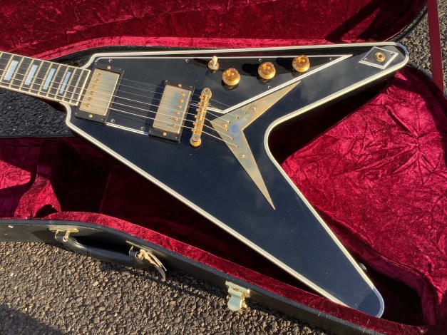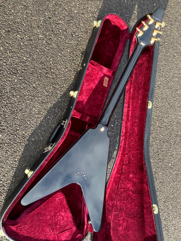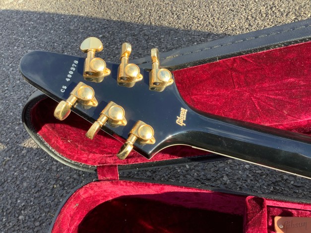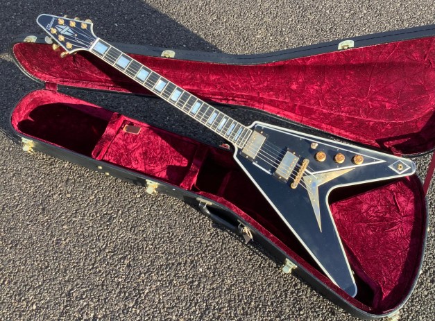 Here one of the flagship guitars of Gibson’s Guitar development, the 1977 Gibson RD Artist D – Rare Gibson guitar and top of the range 1970s guitar with factory fitted Moog electronics circuit. This is the 1st year 1977 version of one of the most ambitious Gibson projects, designed by Gibsons R& D team, hence the prefix RD Artist. The 1st models had 24 frets, and towards the end of the 1st year the models became 22-fret guitars. The guitar is a pandoras box with all the sound goodies everyone wants. In a way you could see, it’s a fusion between Gibson Recording and Firebird. Simply stunning sound. In addition to simple tone volume, it has a ” Bright” switch and “Expander / compression” circuits. The bridge and tail are standard. Plays great and keeps very well in tune. Lives in its rectangular hard case.