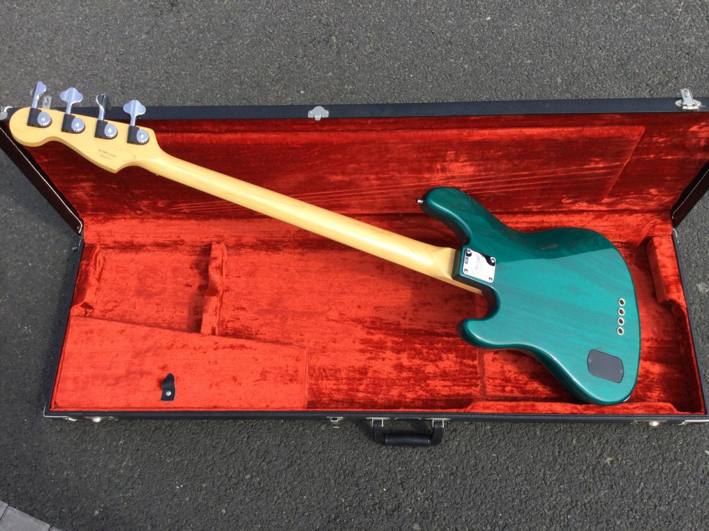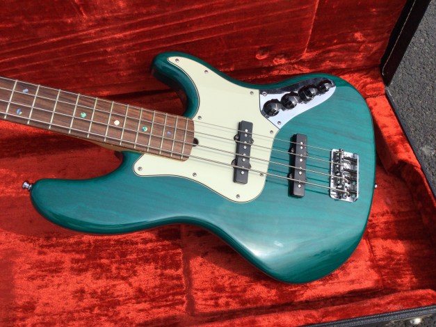 Here we have a cool looking Fender Jazz Bass deluxe in attractive Translucent Teal in excellent condition. It has a modern C profile neck with a smooth rosewood fingerboard which has a 7.25″ radius. The fret-markers are abalone dots. The Teal body polyurethane finish is very clean showing some very light signs of play . This is a great Fender bass with a straight neck and original frets which are in excellent condition. The back of the neck and body is extremely clean. This bass plays superbly well and pack a punch. The bass has a preamp circuit delivering either active and passive tone via a set of N3 Noiseless pickups. The bass also has an active 3-band EQ; the Jazz Bass’s electronics can be toggled between active and passive. Serial number: DN912448, weight: approx. 11lbs, Neck dimensions, Nut width: 1.5 inch depth at 1st fret: 21 mm. Lives in its case.