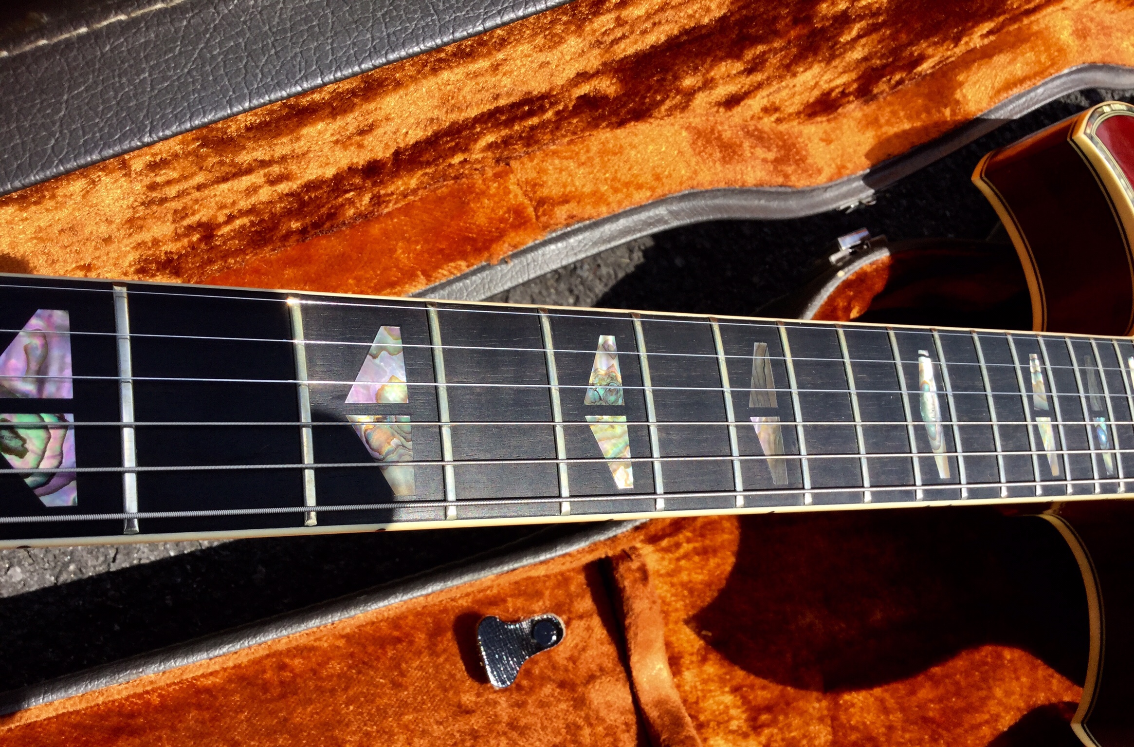 It is a high-quality guitar built with a Honduran Mahogany body, bound with ornate abalone binding, the set neck is made from one-piece bound mahogany with ebony fret-board, again with decorative mother of pearl split-wing markers. The headstock is quite plain with triple binding surrounding the wood, there is no decorative floral motif inlay as common with the later SG-2000 and SG-1000, just the Yamaha Logo.