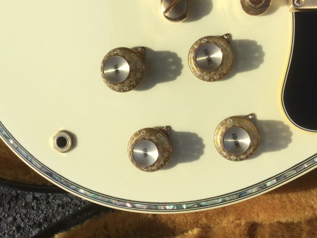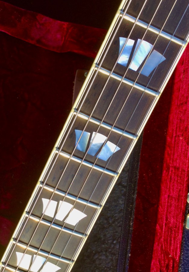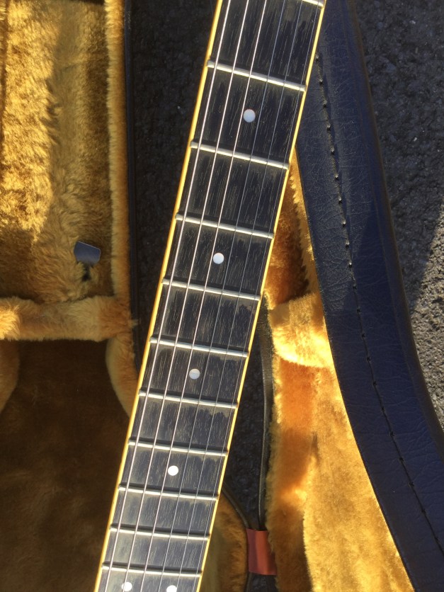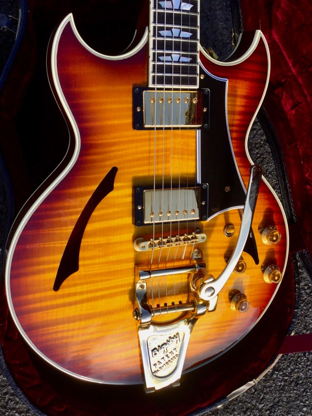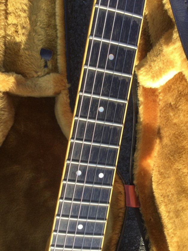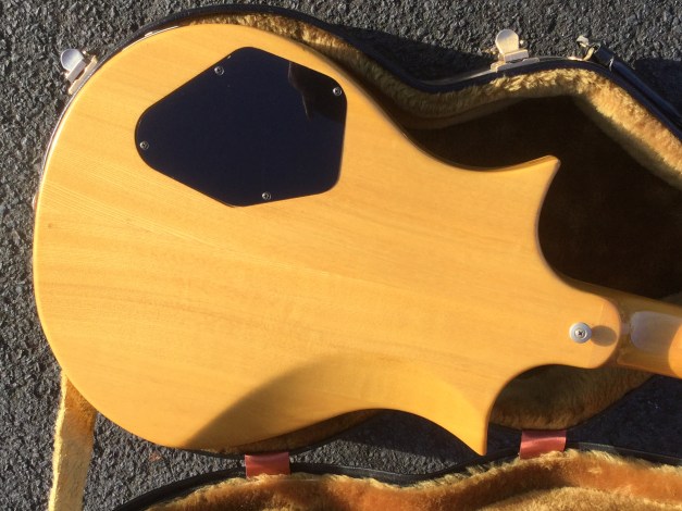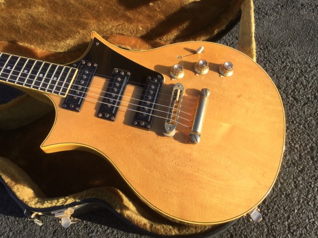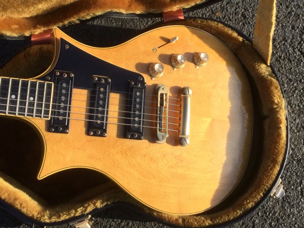 Here another Gibson Marauder, a product of Gibson innovation with Bill Lawrence. The Marauder line was launched in 1974 and remained in production until 1979; being replaced by the Gibson Sonex series around 1980. This Gibson type guitar was initially produced at the Kalamazoo plant, but gradually production was transferred to the newer Nashville plant. The Marauder, along with the Gibson Grabber Bass were Gibson’s mid-seventies budget guitar models; still a Gibson, and not cheap, but certainly not their lowest price electric; though there was a more up-market version, the Marauder Custom,