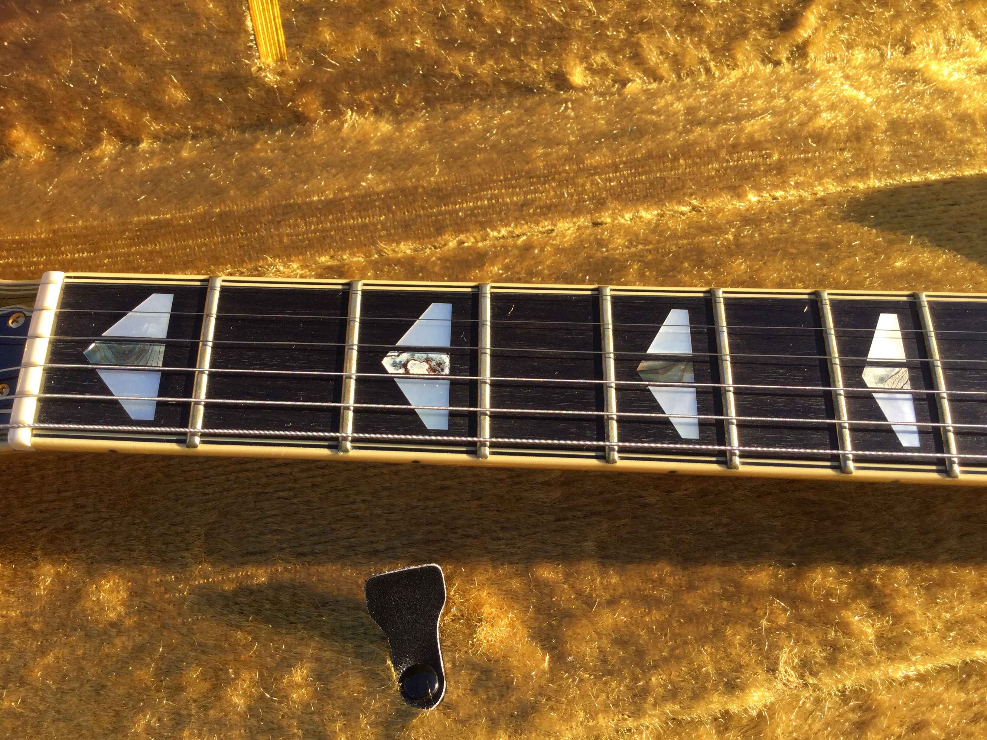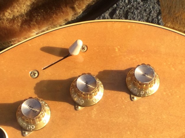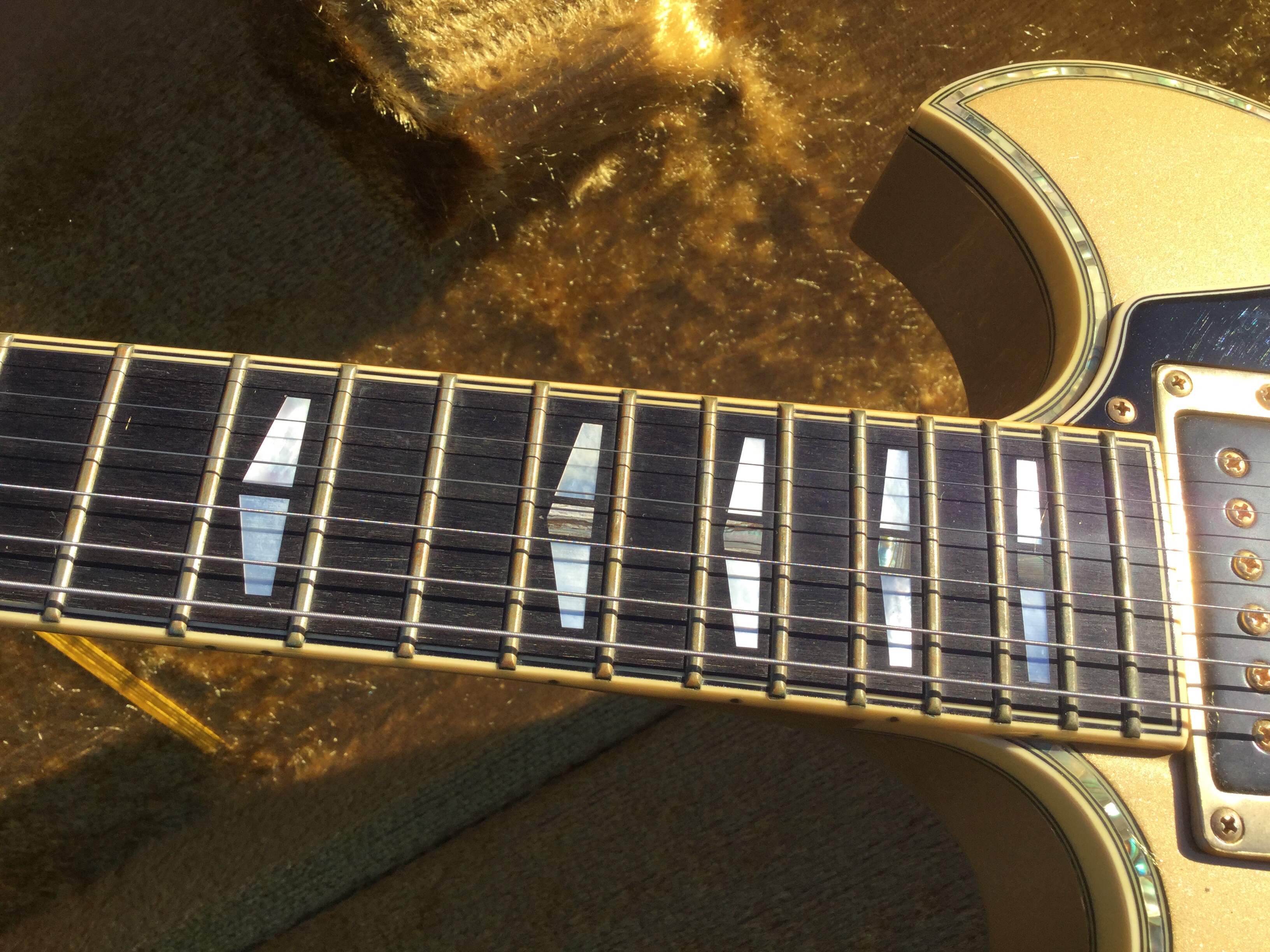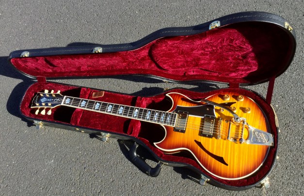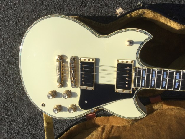 Here another Gibson Marauder, a product of Gibson innovation with Bill Lawrence. The Marauder line was launched in 1974 and remained in production until 1979; being replaced by the Gibson Sonex series around 1980. This Gibson type guitar was initially produced at the Kalamazoo plant, but gradually production was transferred to the newer Nashville plant. The Marauder, along with the Gibson Grabber Bass were Gibson’s mid-seventies budget guitar models; still a Gibson, and not cheap, but certainly not their lowest price electric; though there was a more up-market version, the Marauder Custom,