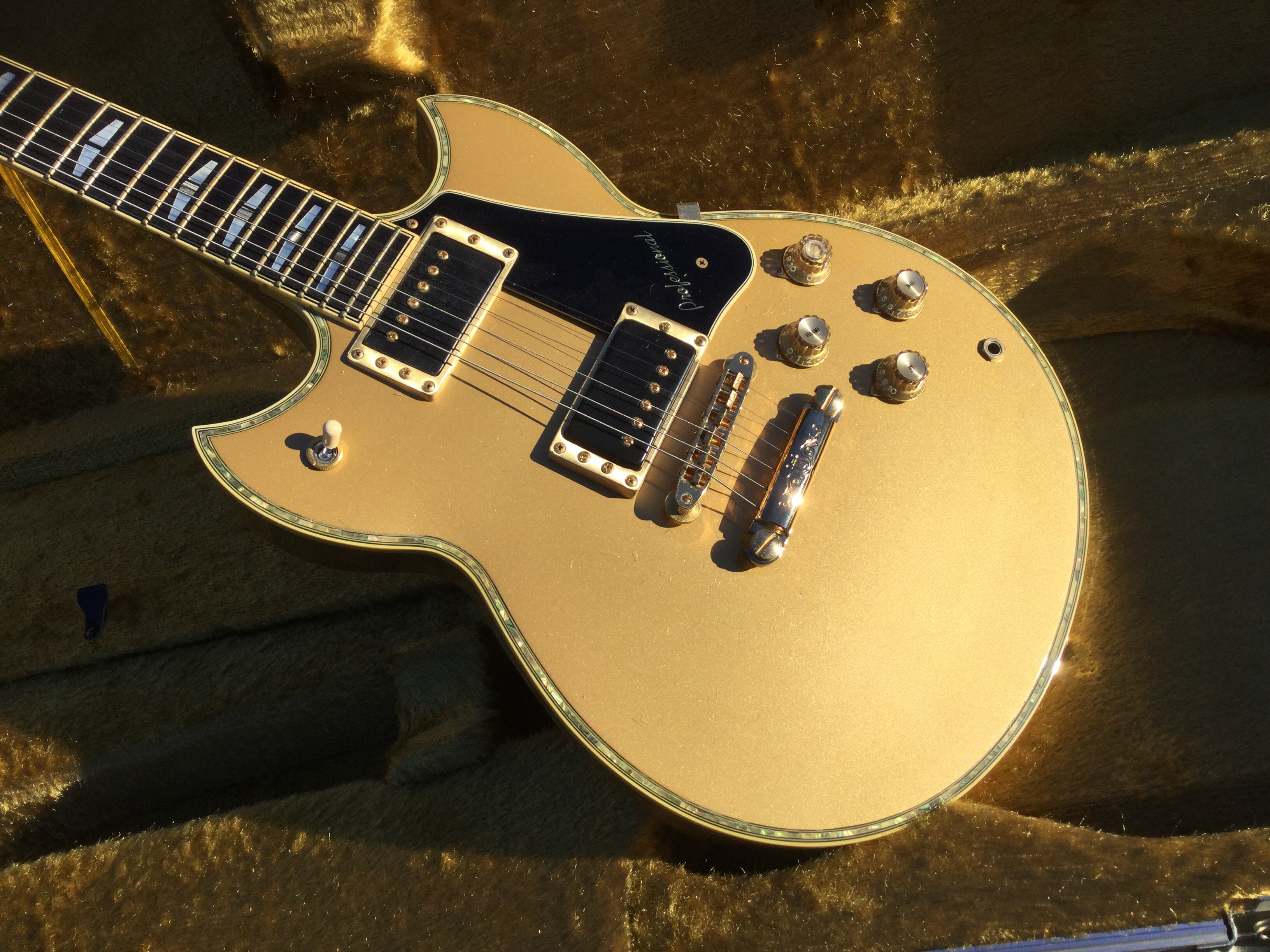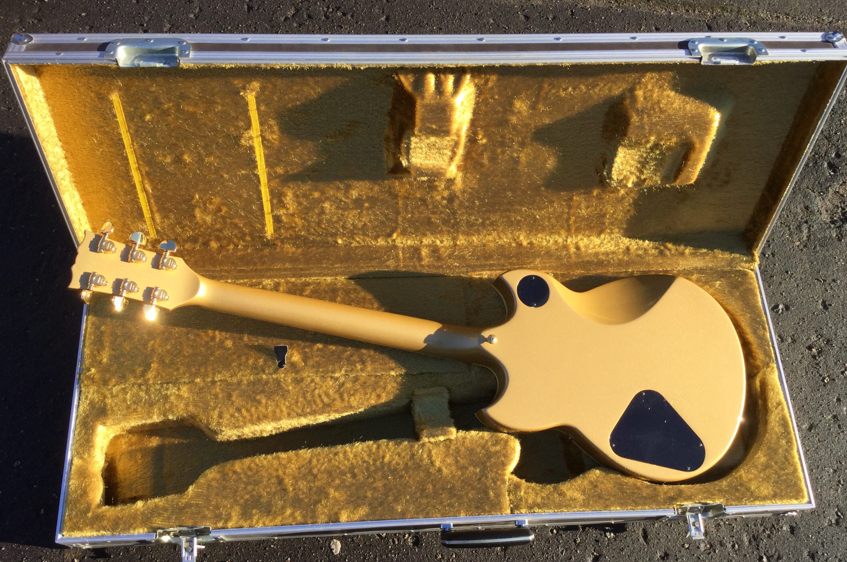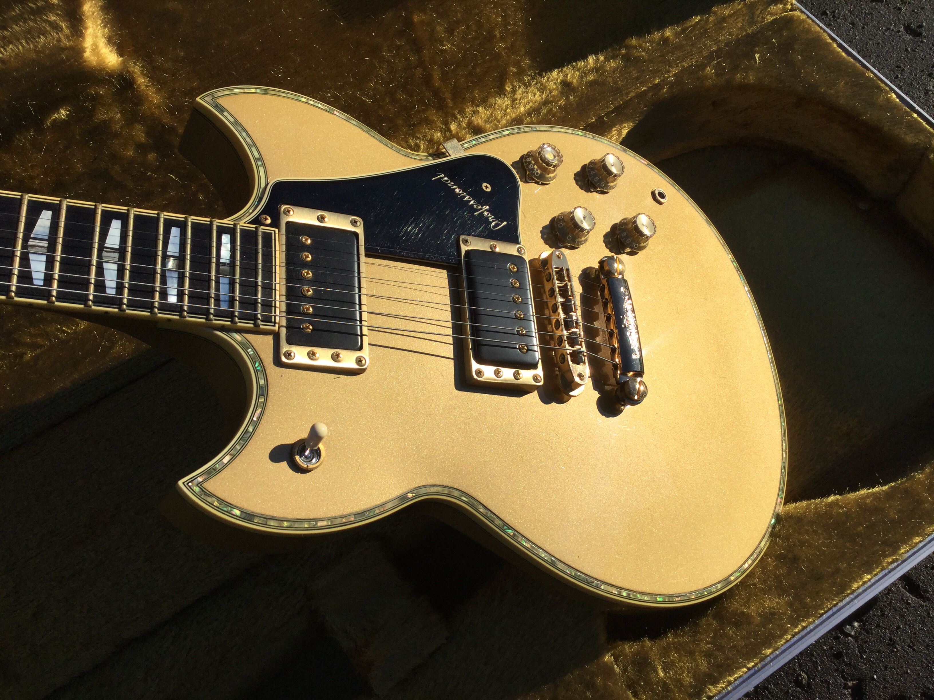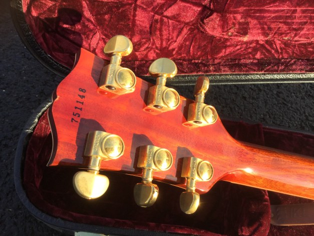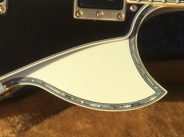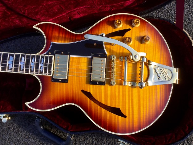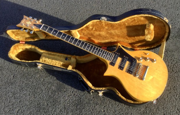 The guitar sports a body shape rather like a Les Paul, but has a bolt-on neck. The body and neck are made from poplar wood and hard maple and the instrument is finished in clear satin lacquer, allowing to see the underlying wood grain. There are three distinct tone settings on the Marauder’s selector switch. The pick ups are a classic Bill Lawrence design with the front pickup is similar to the Super Humbucker with small additional magnets reinforcing and directing the field, while the bridge pickup has a single, iron-cored coil, with a magnet below and iron strips from the lower magnet pole. The fast, easy-action neck is made from Canadian maple. The fingerboard is made from rosewood with dot inlays and the distinctive peghead headstock is of “Flying V-series” design.