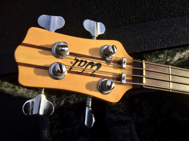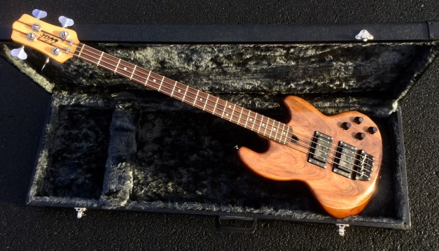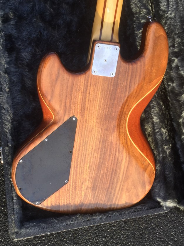 Here another great WAL Mk 1 Bass Guitar Model built in 1984, a handmade guitar from electric woods company put together from a great mixture of exotic woods including Indian mahogany core and American Walnut facings. Brazilian rosewood fretboard with dot markers. This is a cool looking bass and like most other WAL Basses it is a great player too. WAL Basses were once commonplace thoughout the 1980s with a number of bands and music styles.