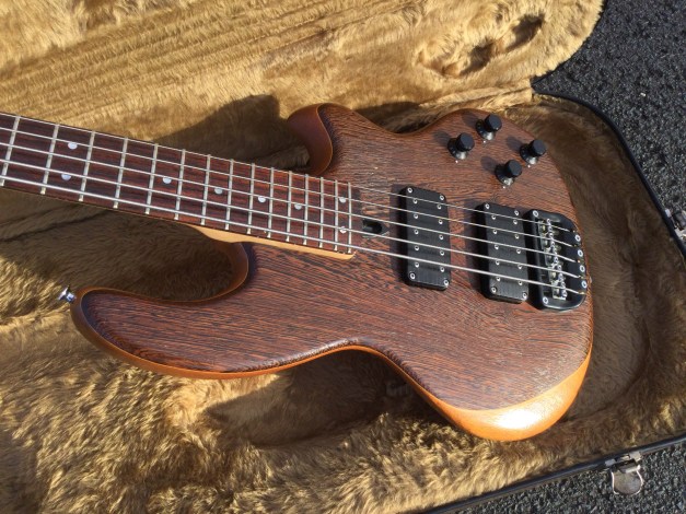 According to the History of Wal Basses website, the bass has “twin pickups with a powerful active circuit offering volume, pickup pan and separate tone controls for each pickup. The volume included a push/pull knob which also activated the ‘pick-attack’ adding a band of high frequency tones ideal for cutting through a muddy live mix. The tones are low-pass controls governing each pickup. They also each have a push/pull switch which activates a boost giving a more ‘active’ tone. An XLR output is fitted standard on all ‘Custom series’ basses”. This bass is quite heavy, but balances well.