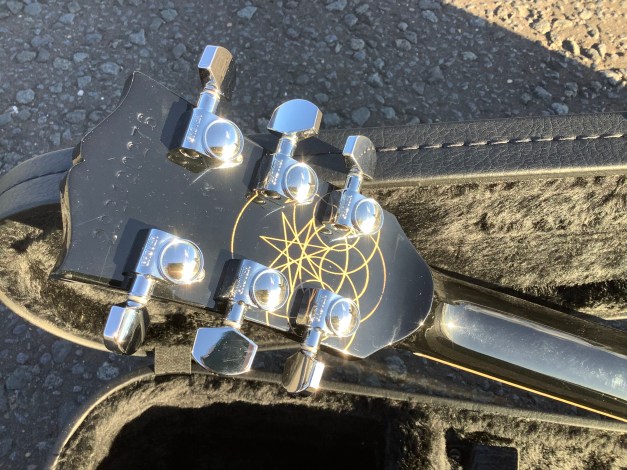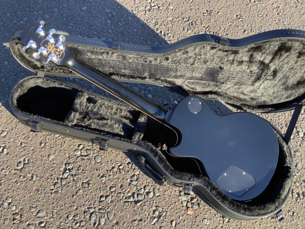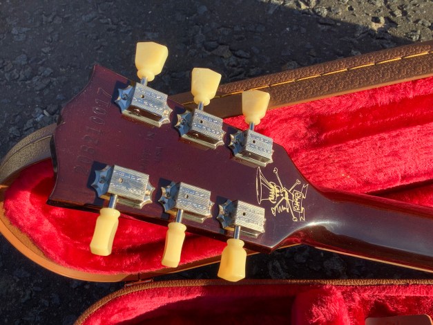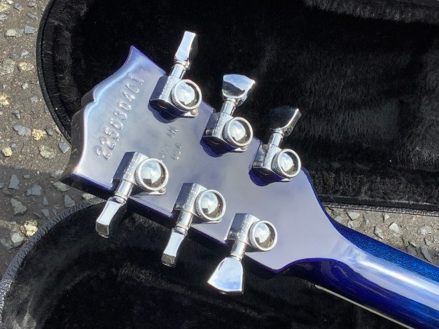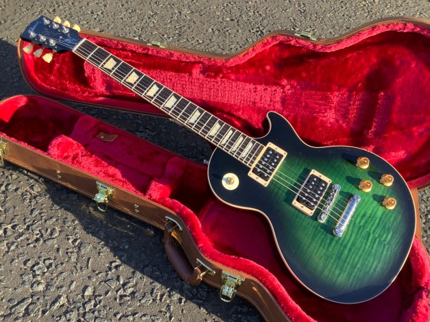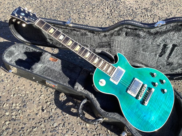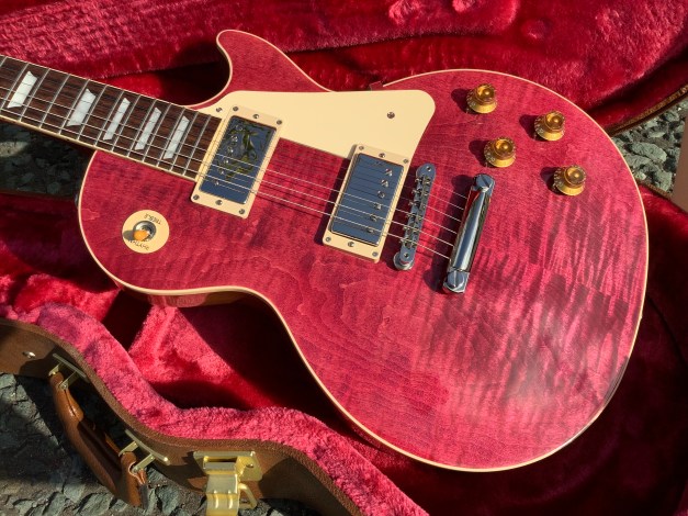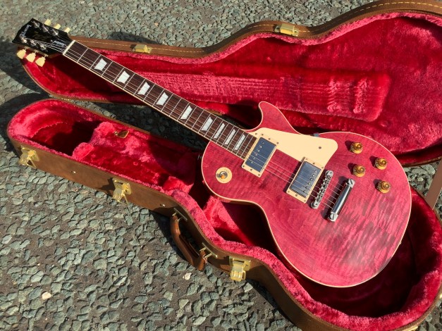 Here another guitar from the Gibson stable, a Gibson Les Paul Standard model in translucent Fuchsia, Made in 2023 as part of the limited edition colours issues. Great guitar with a fine top on it. This guitar has seen or no use at all and has only minor polishing marks to body and is in great overall condition. The overall playability is superb and the guitar is super resonant and has a nice feel about it, aided by the fact that it has a chambered body and an asymmetrical c shaped neck. Set up nice and low, it plays like butter. The guitar lives in its tan coloured hard case