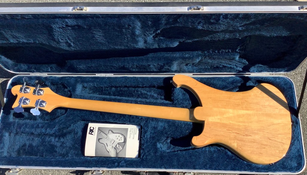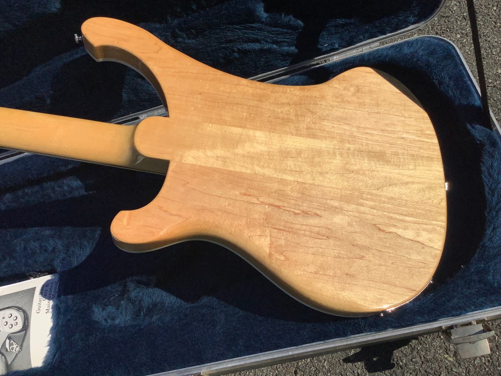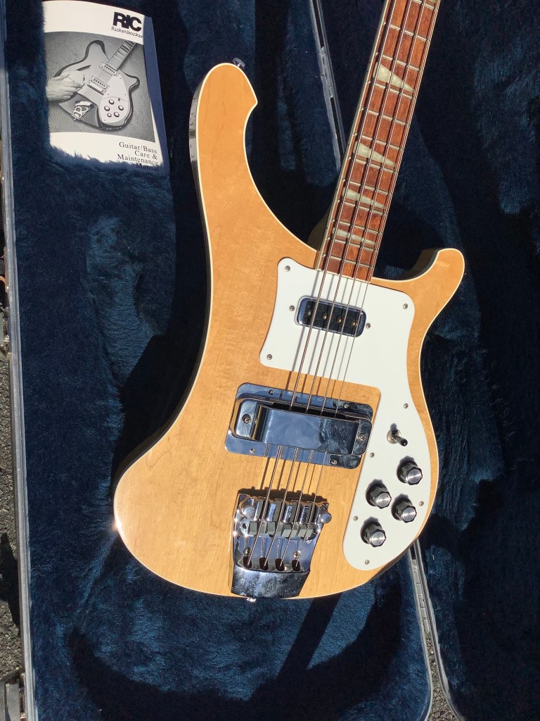 Here a Rickenbacker 4003 bass in Mapleglo finish, made in USA in 2000s, and an example of a royal bass line with an illustrious rock history. The bass features a thru body neck construction and wings placed alongside the central neck. The Rickenbacker 4003, which replaced the 4001, which was issued first in 1961 and lasted till the 1980s. The 4003 differs in the truss rod design and has better wearing frets. The pickups are higher in output, and the bridge pickup, a so-called “horseshoe” pickup, was remodelled, featuring a more conventional design, although the “horseshoe”, is for looks only and removable. Just look at band recordings by Motörhead, Rush, Genesis and others, to fully appreciate the Rick sound. This bass is in exceptional condition snd lives in its Ricky hardcase.