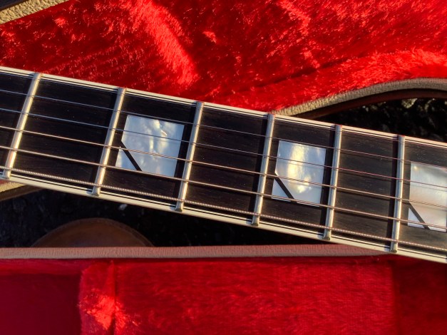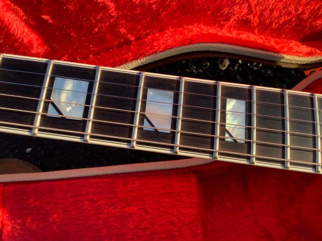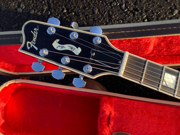 Here an odd Fender guitar model, a Fender Ultra FM Custom Shop Robben Ford model from 1996, one of the uncommon Fenders with a set neck instead of a bolt-on. This model is from the Fender Flame and Fender Elite series and unlike the flame and elite, the Robben model was made in the Custom Shop in the Fullerton Factory in the USA from 1994-2002.