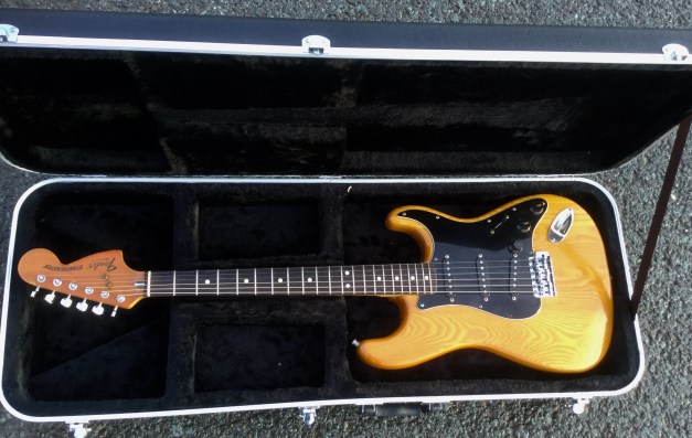 Here a Fender USA guitar, a Natural Wood Fender Stratocaster electric guitar. Great 1979 vintage guitar and a looker too. The electrics work flawlessly. Here we have a guitar with only minor play wear and patina. You won’t find many like this in such a great nick. Great looker and a killer player, as you would expect from a classic guitar. The wood finish has beautifully aged to a rich colour and the neck has a lovely satin finish So here we have a very playable and functional guitar with ounces of mojo and a great vintage feel to it.