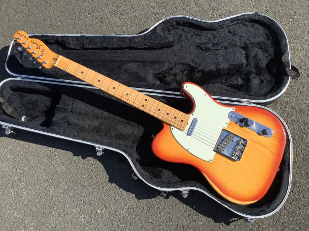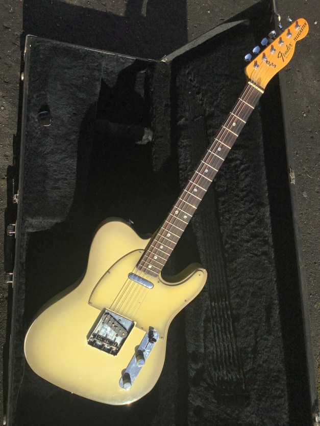The origin of Fender electrics. Who hasn’t ever seen or player Fender Telecaster or a copy? The Fender Telecaster, colloquially known as the Tele was the world’s first commercially successful and mass produced solid-body electric guitar. Its simple design and at the tin, revolutionary sound was ground-breaking and set trends in electric guitar manufacturing and popular music, and especially country music due to its distinctive sound. The Tele was Introduced for national distribution as the Broadcaster in the autumn of 1950, it was the first guitar of its kind manufactured on a substantial scale and has been in continuous production in one form or another since its first appearance, have a look, there are in my collection a few Teles.