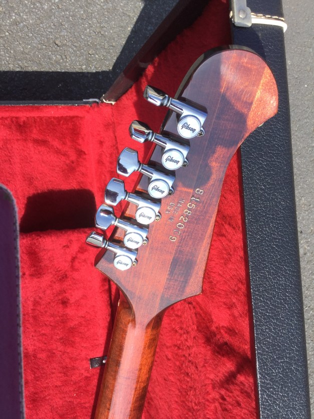 Here we have a Gibson Firebird II, Rare Artist Issue kitted our with active Moog Electrics. These produce a built in Compressor and Expander system, allowing for punchy sound as well as long sustain, This rare Firebird/RD Artis hybrid was briefly produced in 1982/3 and produced in around 250 units. Kitted out with two powerful Humbuckers it is a powerhouse of sound. Gibson Firebirds have their origin in the 1960s and have been the guitar of choice for music icons such as Lynyrd Skynyrd, The Allman Brothers, Phil Manzanera of Roxy Music, and Johnny Winter to name but a few. Most Firebird models Reverse and Non-reverse were all issued with 2 humbuckers, and some with 3-pups. It’s a heavy guitar due to the so,I’d mahogany slab, but balances well and doesn’t seem to suffer from neck dive or so. Guitar lives in its hard-case.