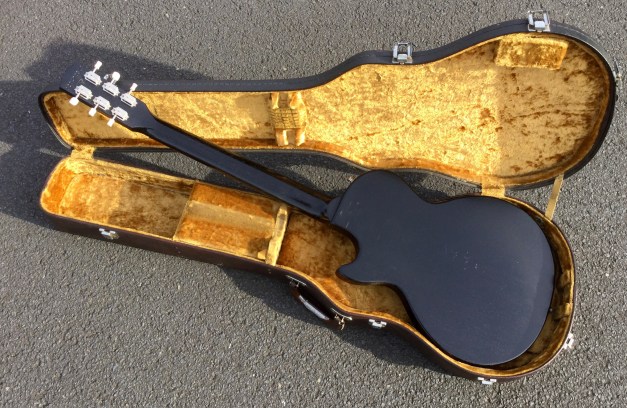 Here a modern but simple Gibson, single cutaway melody maker 2007, a twin-pick up reissue of the 1959s models. The Pickups plastics covers have the Gibson Logo/Name. Classic wraparound bridge/tail piece. The finish is a nitro cellulose finish, similar to the original models. Rosewood fretboard with dot markers. Small minimal guitar, quite functional. Lives in its Gibson Case.