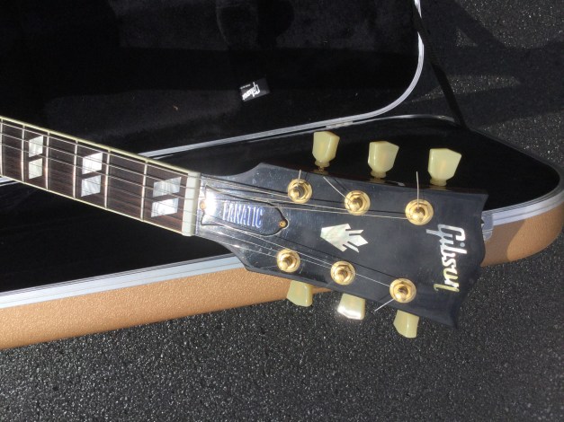 Here a modern unusual guitar the Nancy Wilson Nighthawk Standard, loosely based on Gibson’s Les Paul model but with a deeper single cutaway and a longer scale length of 25inch. Its top is figured maple, and back is mahogany. The guitar has a bound fingerboard of solid rosewood, with parallelogram position markers. The nut is Corian. The Nighthawk Standard is quite a versatile guitar with a Mini-Humbucker in the neck position, able to make a bit of growl, the Hum-bucker in the bridge position can do some serious crunch also, as well as clear tones. All this is run by a five-way selector switch to select either full humbuckers or single-coil sounds, and a range of mix tones too. The guitar is quite light and still resonant and sustains surprisingly well no doubt helped by through-body stringing and heavy bridge. Great guitar.