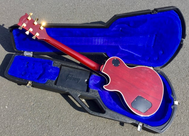 Here a traditional Gibson Les Paul Custom in Cherry Sunburst with a red back and neck. It’s a 1988 model and is a superb and cool looking guitar. The guitar is in great overall condition with only a hint of tarnishing on the pick up covers giving it patina and bit of rock mojo. With its fantastic feel and killer looks, and awesome sound it is a real winner. The fretboard is dark ebony and the mahogany neck plays light and fluid. Guitar lives in its original chainsaw hard-case.