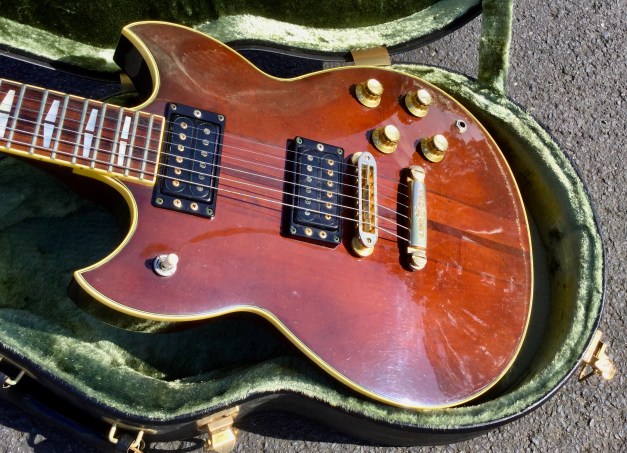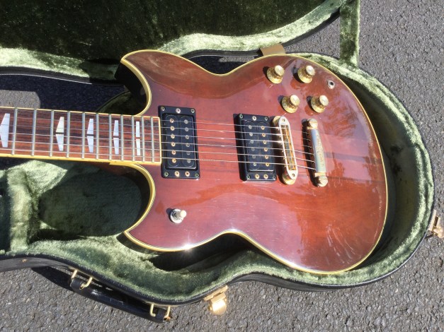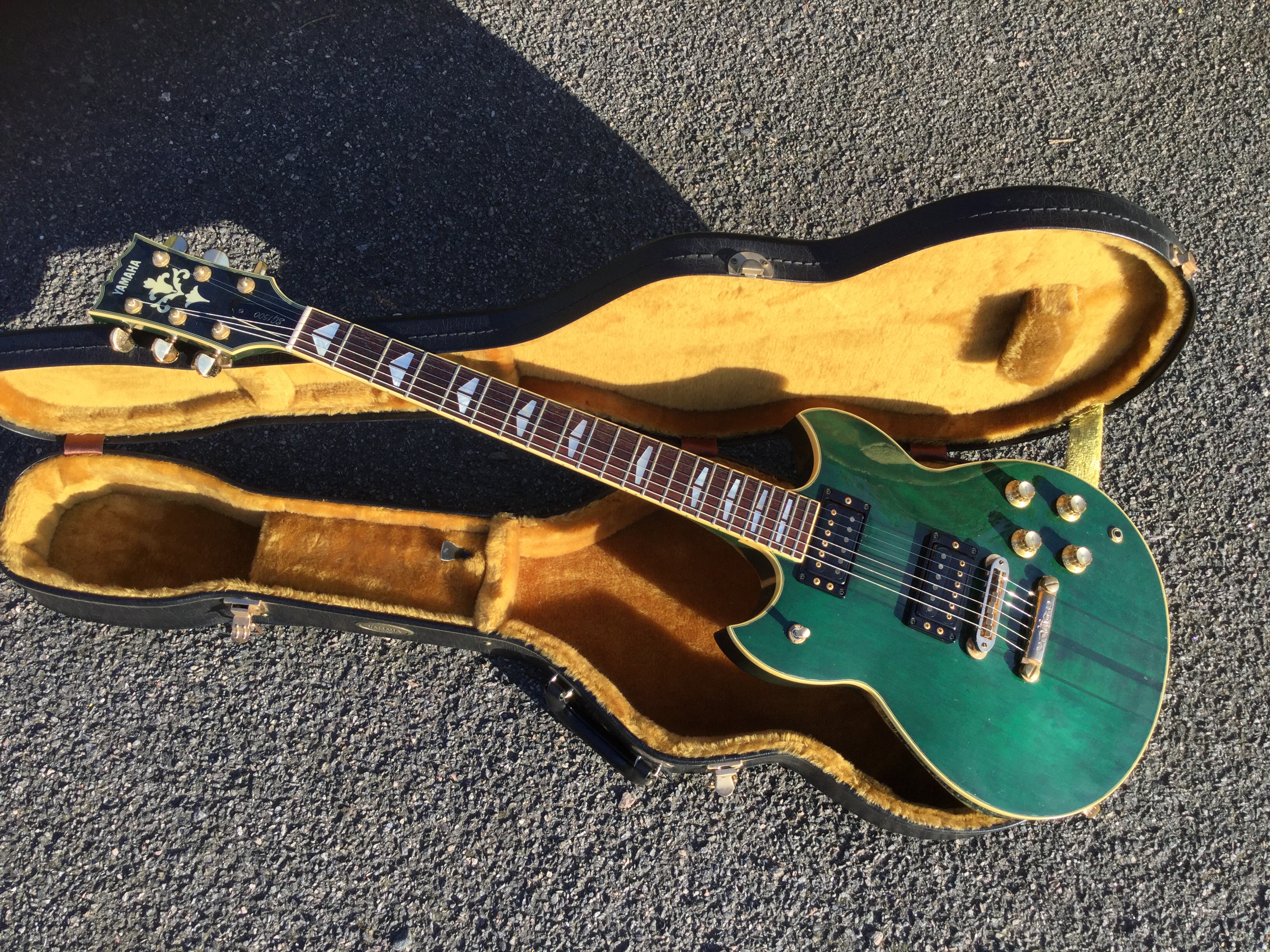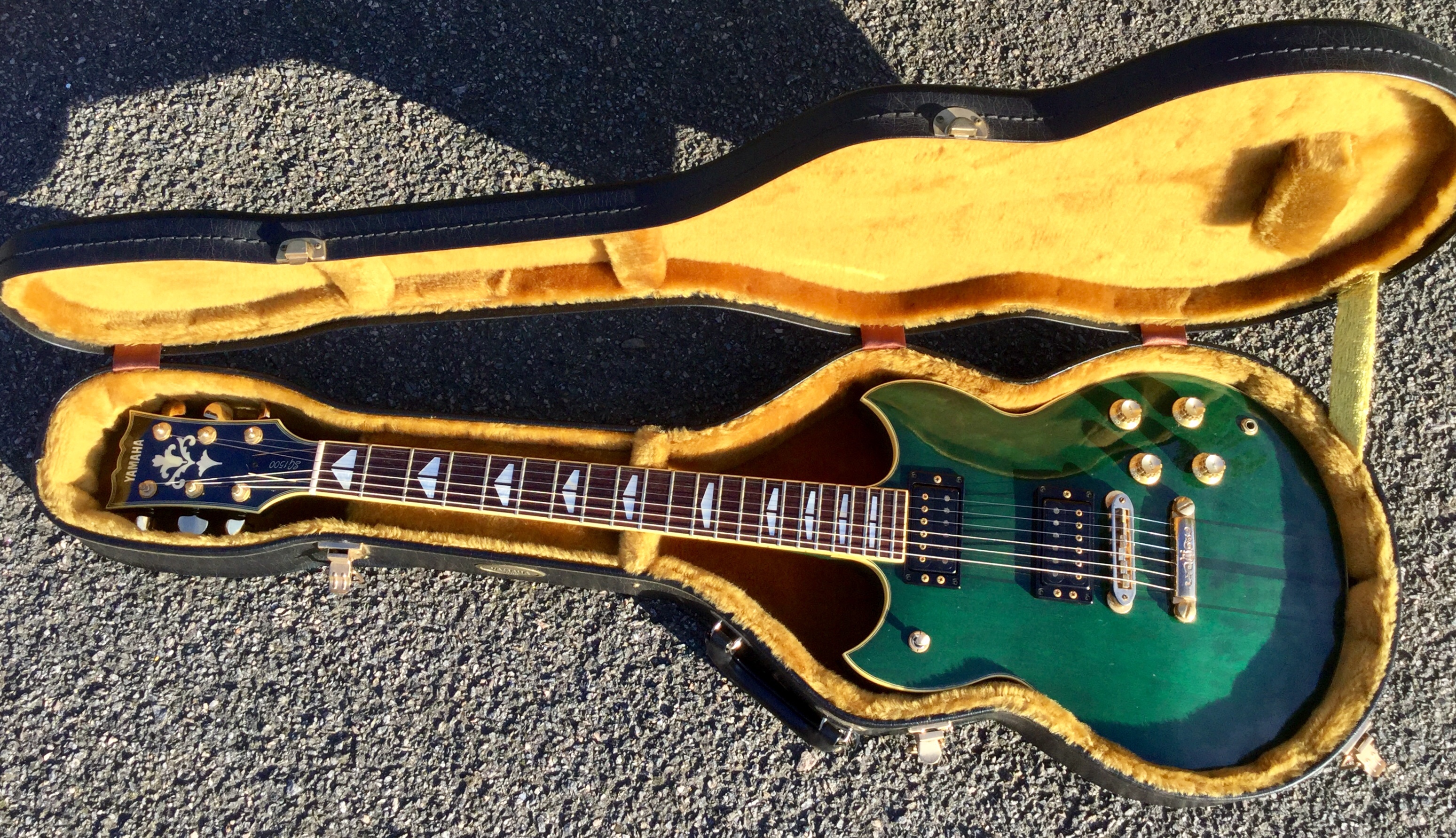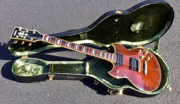 The Yamaha SG-1500 guitar is definitely a great example of a top quality guitar. It sports a mahogany body with thru neck, rosewood fret board, Split wing fret-board position markers. Gold plated Hardware, Twin hum-buckers, coil tapping option. The guitar is quite heavy with lots of sustain, No sustain plate fitted under bridge and no pick-guard as standard. The Yamaha SG-1500 is the in-betweenie for the renowned Yamaha SG-2000 and Yamaha SG-1000. Well set up with low action and powerful double humbuckers make for a killer guitar.