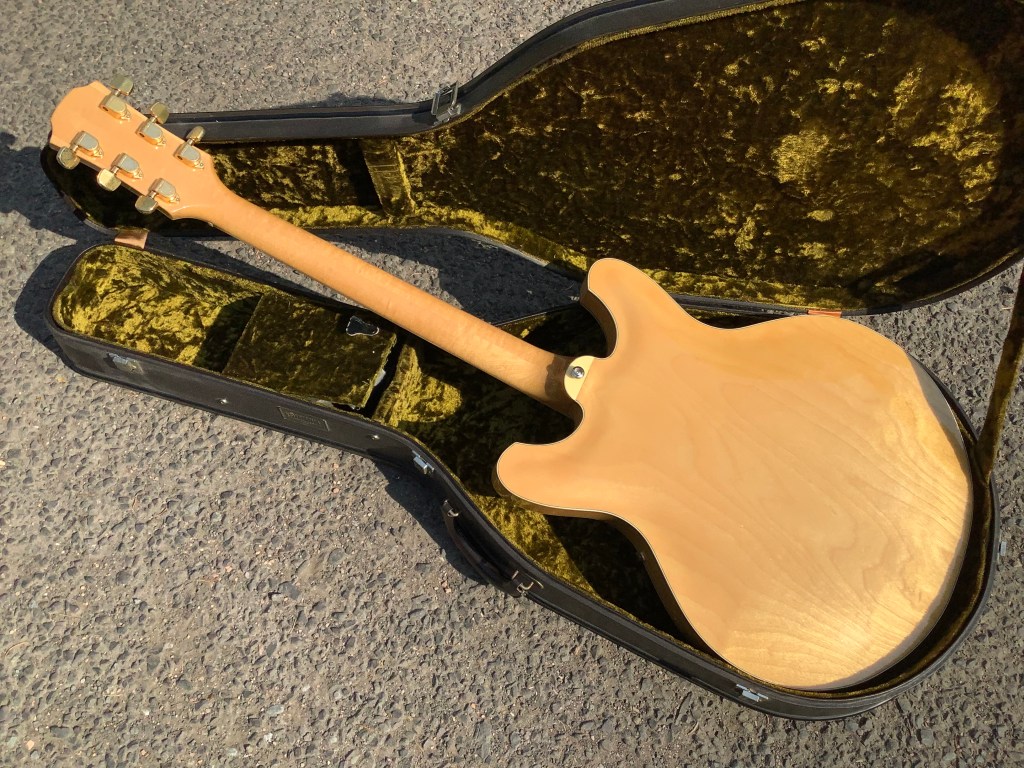 No guitar collection is complete without some semi acoustic guitars. Now back in time, when Carlos Santana was consulted for his part in the development of the now famous Yamaha SG-2000, Yamaha Corp had just release two interesting solid body guitars, the Yamaha SG-90 and legendary Yamaha SG-175. Yamaha Corp had developed some interest semiacoustics, however, in 1974 the Yamaha SA-60 and SA-90 were released. These were the top of the range semiacoustics that Yamaha produced. High quality maple formed and moulded into a beautifully crafted semiacoustic. Quite a bit larger that’s the Gibson 335 or 339, theseguitar resonated well even when played unplugged. The large hollow body is craftfully made with ebony fingerboard, real abalone and finished off with gold hardware. With a three way toggle switch within two dual humbuckers, similarly found in the SG-175 give the guitar a great solid punch and the set neck construction with glued in neck gives it ample sustain. The headstock is quite large and finished off in a lovely wood finish. Stunning.