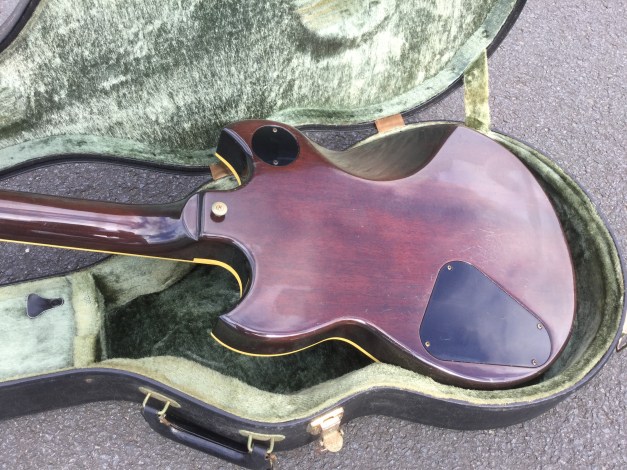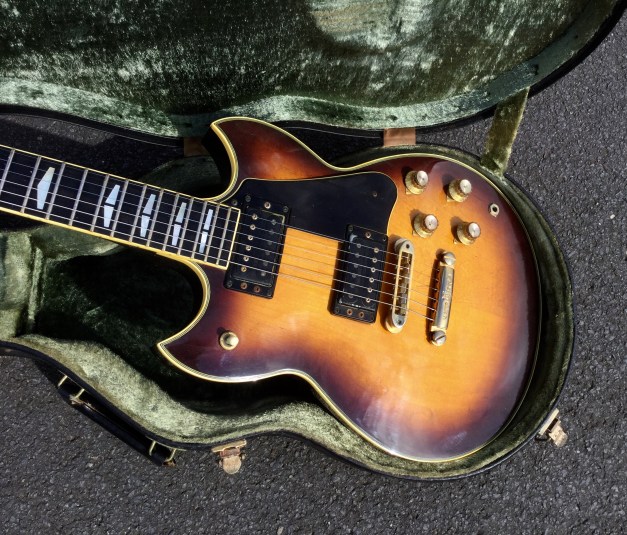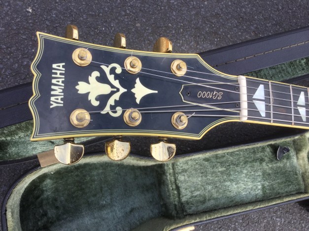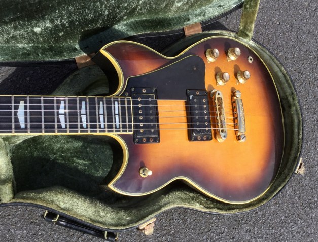Presented here is a 1979 Yamaha SG-1000 in a Tobacco Sunburst finish, in good condition with the serial number 003484. SG-1000 guitars are still found, but pristine 1970s models are increasingly rare. This particular instrument is over 40 years old and maintains good condition, albeit with some minor tarnishing on the brass hardware. The SG-1000 is known for its versatility, and this model features coil taps. It boasts a set mahogany neck and an ebony fretboard adorned with mother of pearl, split-wing inlays. Typical of most Yamaha SGs, it has a substantial weight, approximately 4.2 Kgs, and a neck width at the nut of roughly 4.4 cm.
