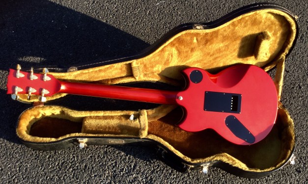 It sports a Mahogany body with maple cap, a flat body with a flush, set neck, ebony fret board, mother of pearl split-wing fret-board position markers, locking nut and Rockin Magic Tremolo unit. Gold plated Hardware, Twin hum-buckers, coil tapping option. The guitar is less heavy than its SG-2000/1000 counterparts but still has lots and lots of sustain, although no brass sustain plate fitted under bridge like its brother SG-2000. The guitar is a real beauty in metallic red with a cream aged binding. The guitar is quite well finished with a great appearance, headstock decoration and no standard pick-guard. Weight of guitar approx. 4 Kgs, neck width at nut approx. 4.4 cm.