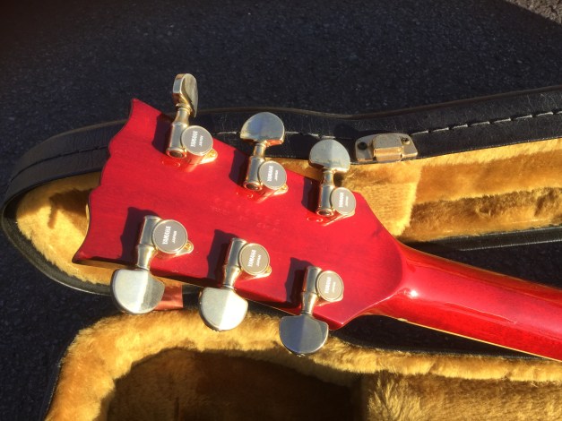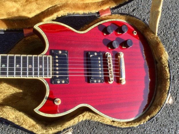 Here probably one of the rarest of my Yamaha SGs, along with the Yamaha SG-25s and SG-175. The story goes that an iconic Yamaha Custom Shop, in Shibuya Tokyo Japan celebrated its 20 years anniversary and a commissioned Yamaha Music Corp to issue a selected 20-lot Yamaha SG guitar production run. These SGs were made celebrating both Yamaha Electric Guitar production since 1966, an anniversary coinciding with the existence of the Shibuya music shop. This is one of them, a Custom Shop made guitar with elements of the legendary Yamaha SG-175, SG-3000 and SG-1000. The truss-rod cover is embossed with the wording SG-1966 and Shibuya. The guitar itself is quite light compared to the SG-2000/3000 models and plays exceedingly easy. A great looker and with its Spinex pick ups it sounds like killer guitar too.