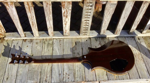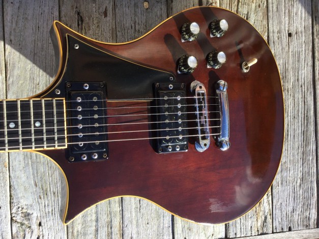 Here a Yamaha SX-800A in walnut brown. The SX models were in the day also known as the “Devilhead Guitars” and along with the SG were developed after the earlier SG-90/175 that were made 1974-75. The SX was short lived and last models were issued in 1976/8. The A models were kitted out with hum-buckers and the B models had 3 single coils pickups. The construction materials varied between the A and B versions. The A version was made out of Maple and Mahogany for the body and the set neck was built from mahogany with an ebony board. Notable players were Tommy Bolin and Rory Gallagher.