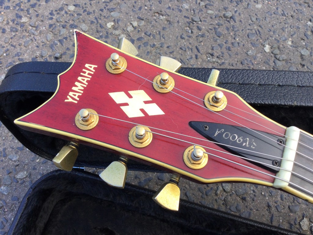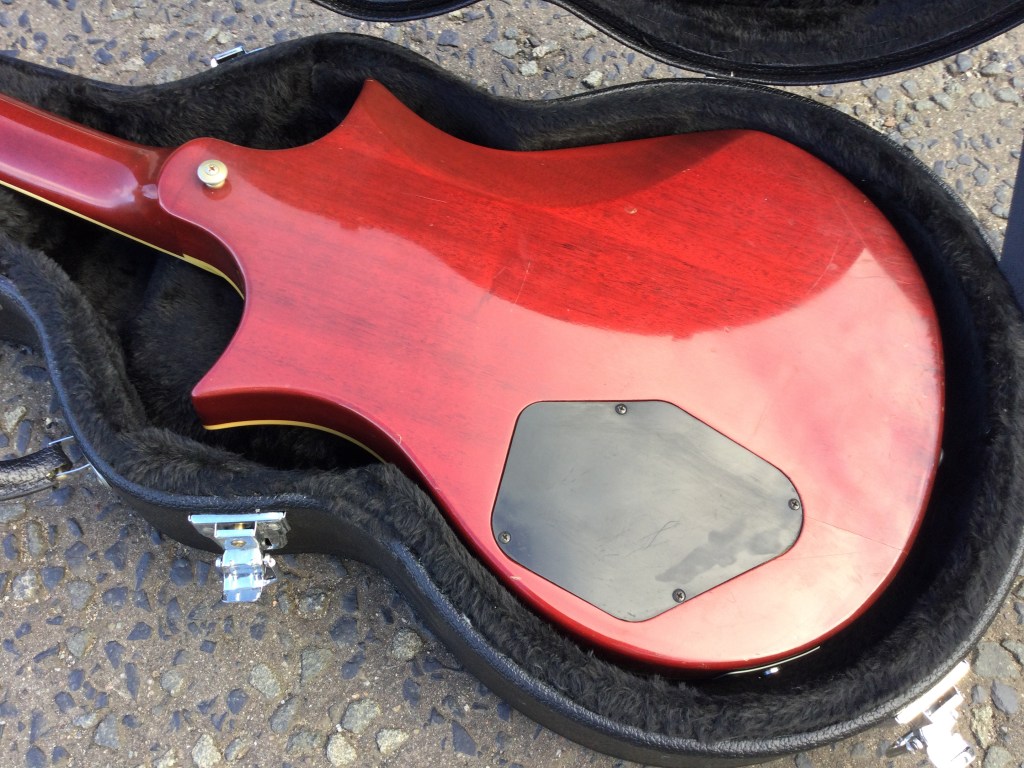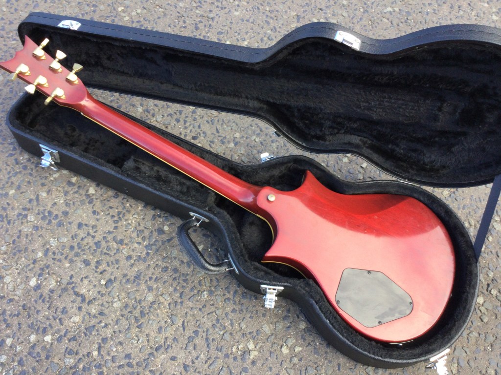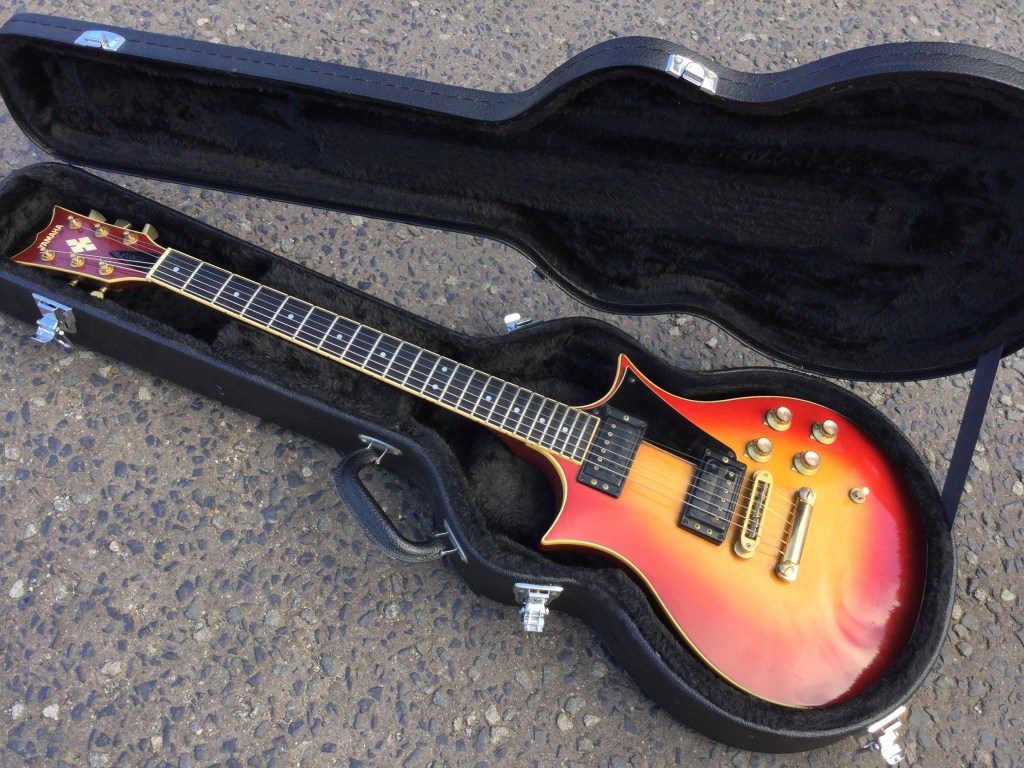 Here an uncommon Yamaha SX-900A in Cherry Sunburst, crafted in Japan in 1976. The SX series, also referred to as “Devilhead Guitars,” was developed in tandem with the SG series, succeeding the earlier SG-90/175 models from 1974-75. The SX series experienced a short production period, with the final models being released in 1978. The ‘A’ models boasted two humbuckers, whereas the ‘B’ models came with three single-coil pickups. The construction materials for the ‘A’ and ‘B’ models varied; the ‘A’ model featured a Maple and Mahogany body, and its neck was made of Mahogany with an Ebony fretboard. Renowned musicians such as Tommy Bolin and Rory Gallagher were known to play these guitars.